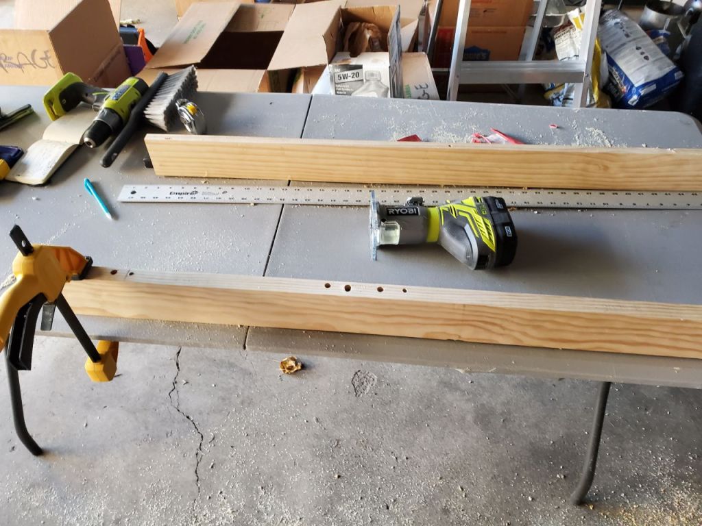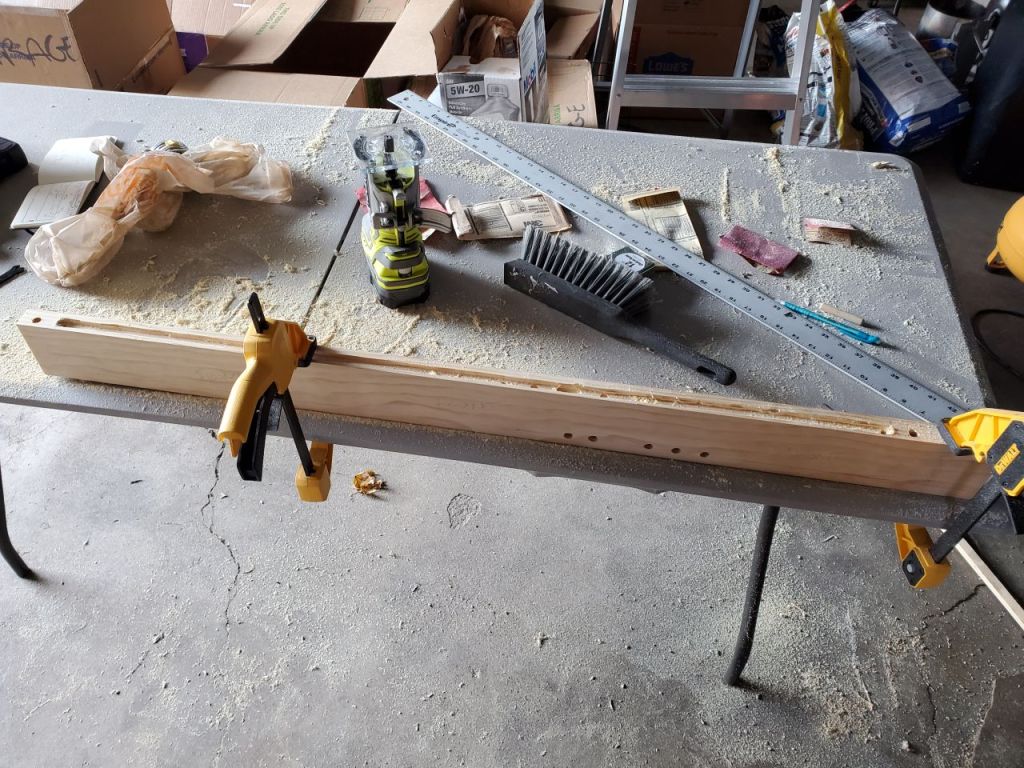 Then came routing out the channel, again by hand. I didn’t worry too much about looks at this stage, since everything on the inside of this channel would not be able to be seen from the outside. I took some breaks from the routing to drill the holes on the front of the board. This routing was the most excruciating of whole build, because of my tools. I built this back in the winter when it was really cold out in the garage, and my battery powered router’s battery was going on five or six years old. That combo led to a single pass with the router in a battery charge! I spent several days charging, routing a pass, and charging again until the whole thing was finished.