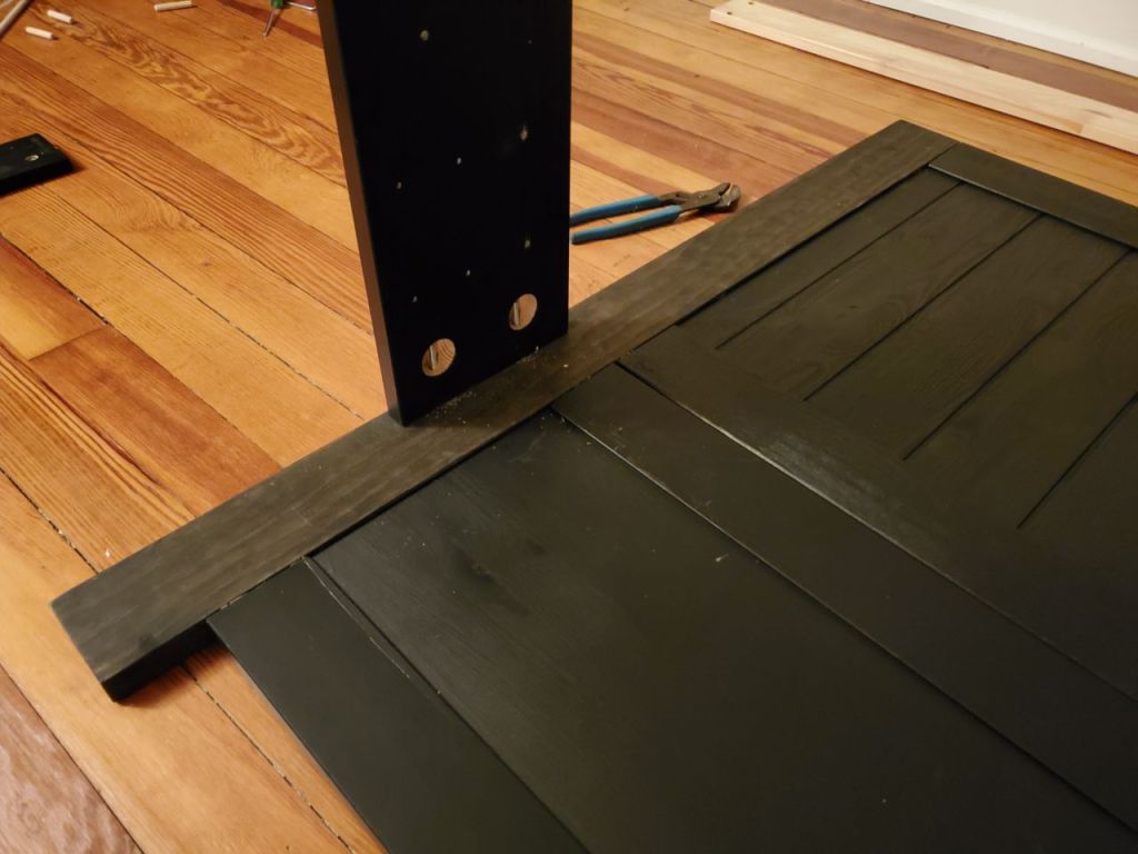 After the stain, the board was screwed in and glued up to the rest of the headboard.